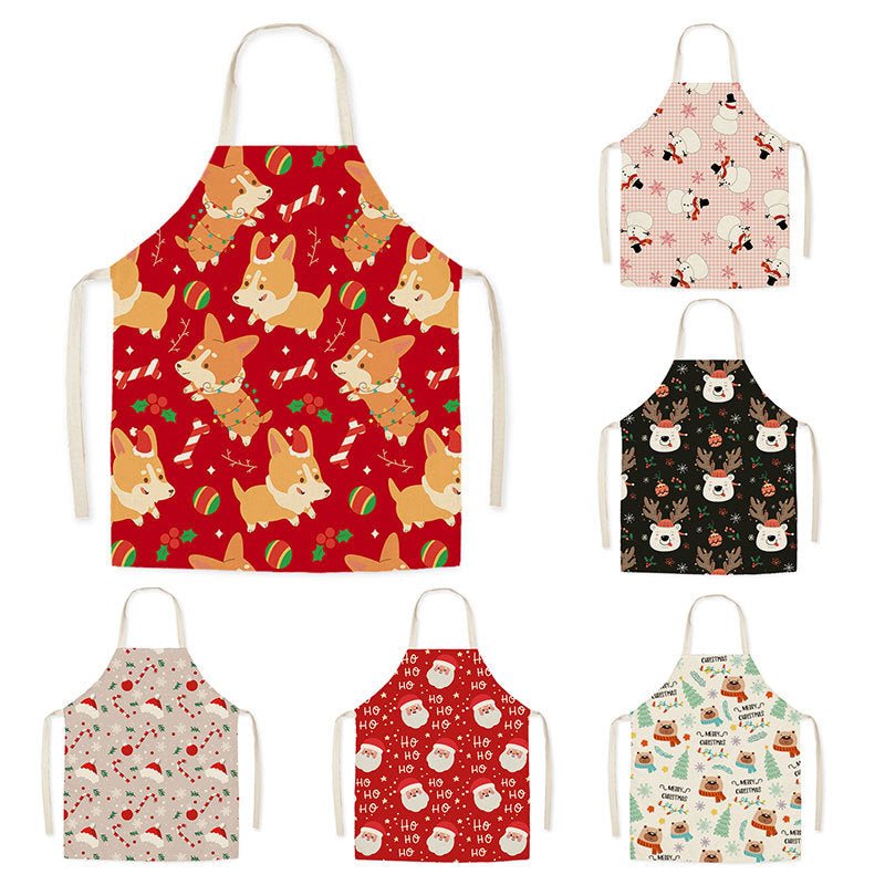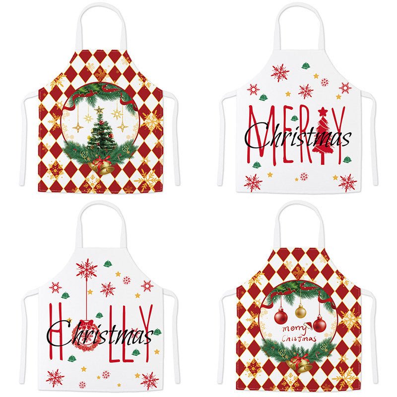 Tablier de cuisine anti-taches en lin pour Noël et Nouvel An, décoration pour adultes et enfants